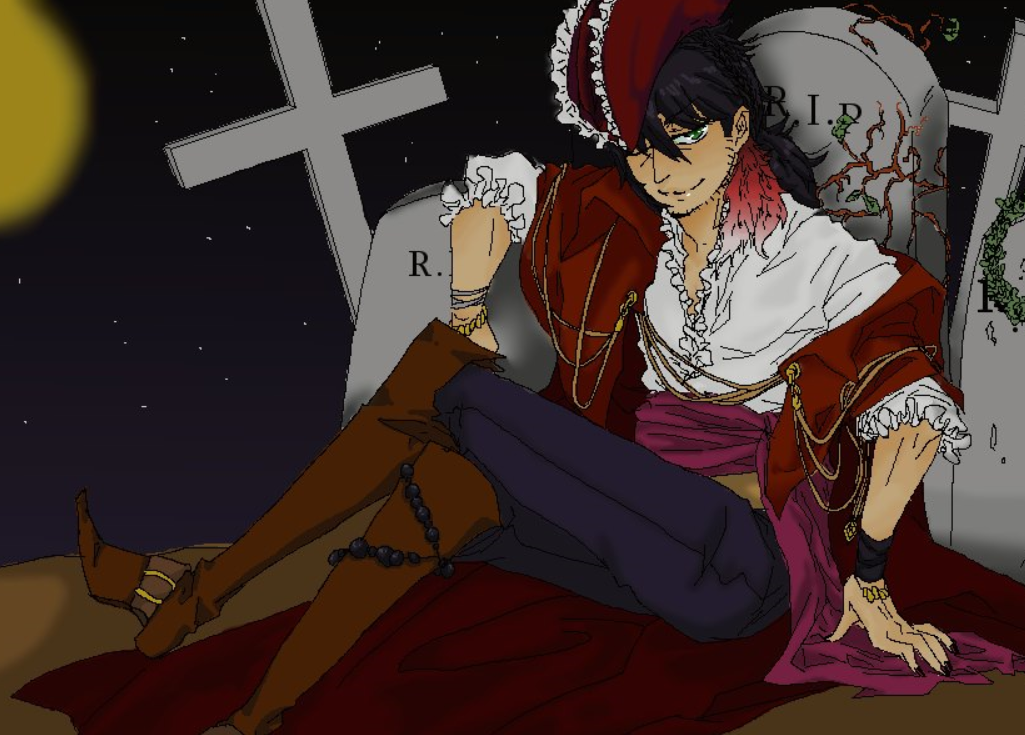 anyway. well, first, lup will notice and judge that he's in this pirate outfit without the hat, then she will probably notice the slit throat. since that's like, kind of obvious on the frontsies part of thing.